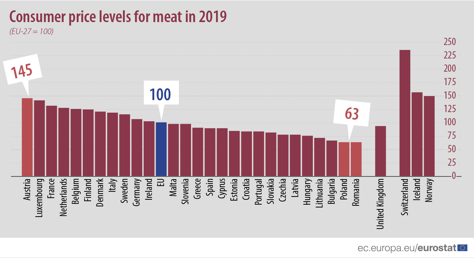 Prețurile la carne în statele membre UE (2019)