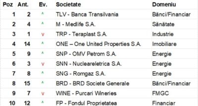 Iată care sunt companiile care ocupa primele 10 poziţii în BVBescu Retail Pulse Chart, din punctul de vedere al interesului investitorilor individuali la Bursa de Valori Bucureşti, în luna februarie 2022: