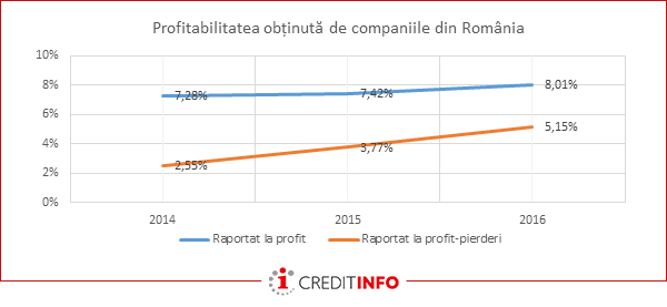 Totuși, deși sunt mai puține companii și au mai puțini salariați, profitul înregistrat de ele se află pe un trend crescător: 96 de miliarde lei în 2016, față de 89 de miliarde în 2015 și 83 de miliarde în 2014. Totodată, pierderile înregistrate de companiile românești au fost din ce în ce mai mici în ultimii trei ani: de la 54 miliarde lei în 2014, la 44 miliarde în 2015, respectiv 34 miliarde anul trecut.