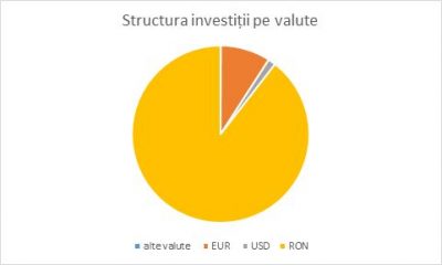 La nivelul întregului sistem de pensii private, din graficul de mai jos se observă că există o preferință pentru investiții în monedă locală (89,5%), urmată de EUR (9,07%) și USD (1,39%).