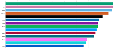 La nivel regional, ar mai fi de semnalat faptul că Cehia apare ca egală cu Spania (ambele cu 91% din media UE). Însă asta după ce urcase la 96% în 2020, an în care spaniolii au bifat doar 83% din media UE, cu zece puncte procentuale sub maximul din ultimii zece ani (93% din media UE în 2017).